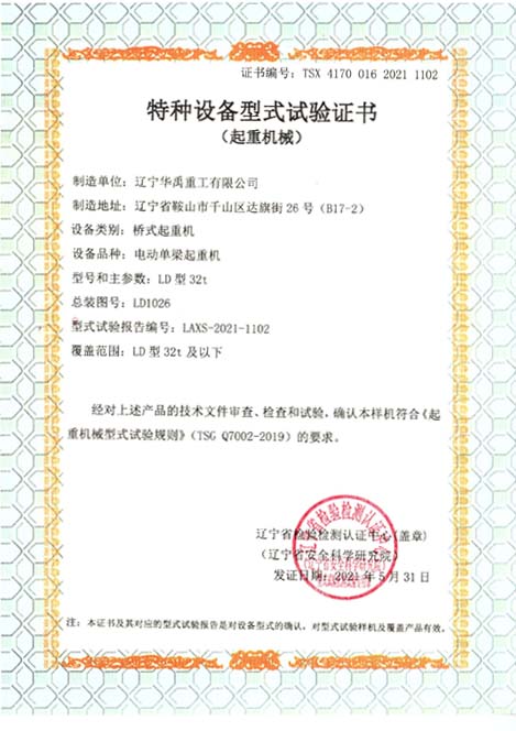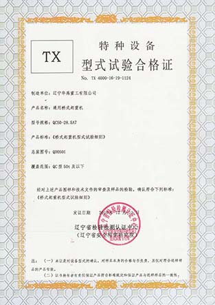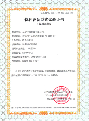 防爆双梁型式试验合格证